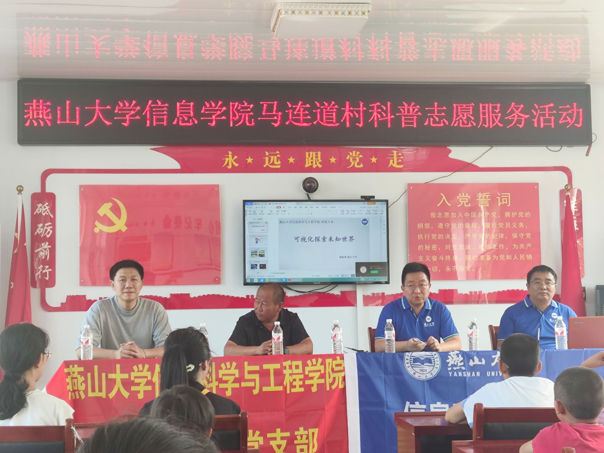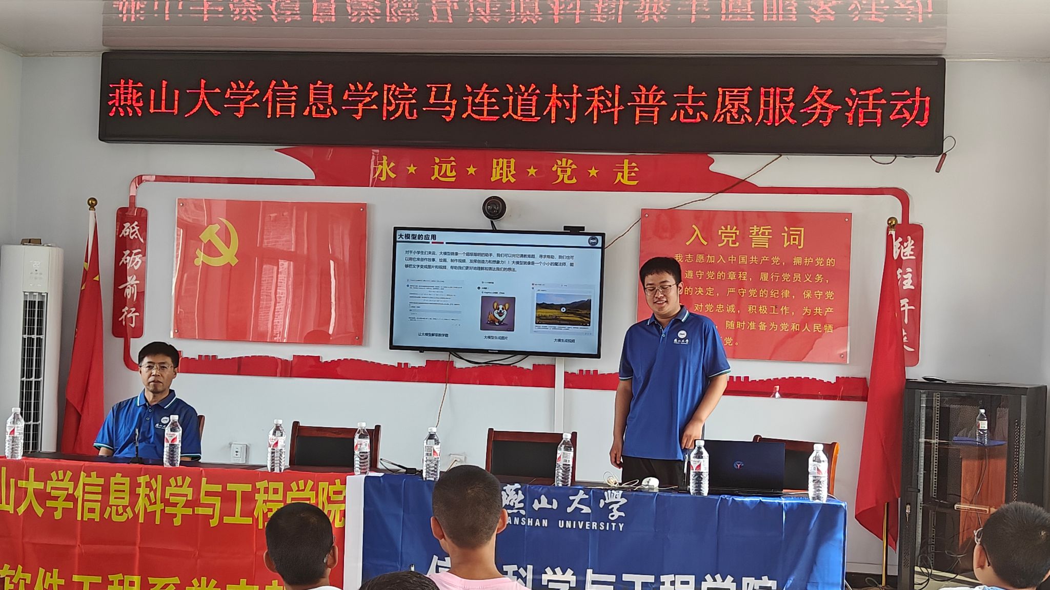 为进一步强化高校基层党组织服务社会职能,8月4日至5日,304永利集团官网入口永利集团304am登录精心组织科普宣传队奔赴承德市围场县马连道村开展“科技下乡、科普惠民”志愿服务活动。信息科学与工程公司党委副书记李浩然、公司综合办公室正科级秘书时腾飞、软件工程系党支部书记尤殿龙、系主任冯建周、软件工程系教师代表郭栋梁、李志明以及刘亚鹏、王浩宇、邱华霄、冯凯旋四名研究生参加此次活动。