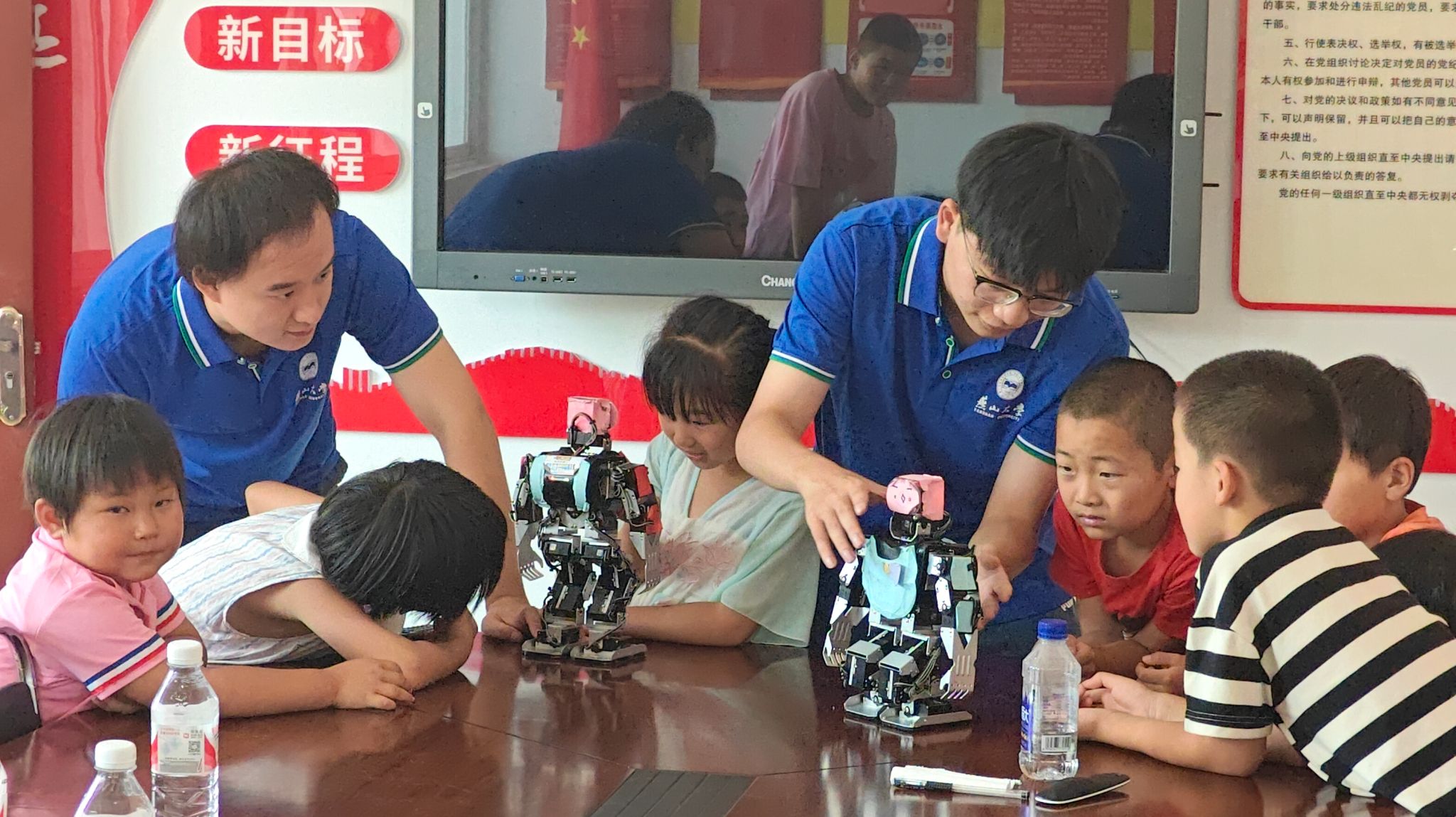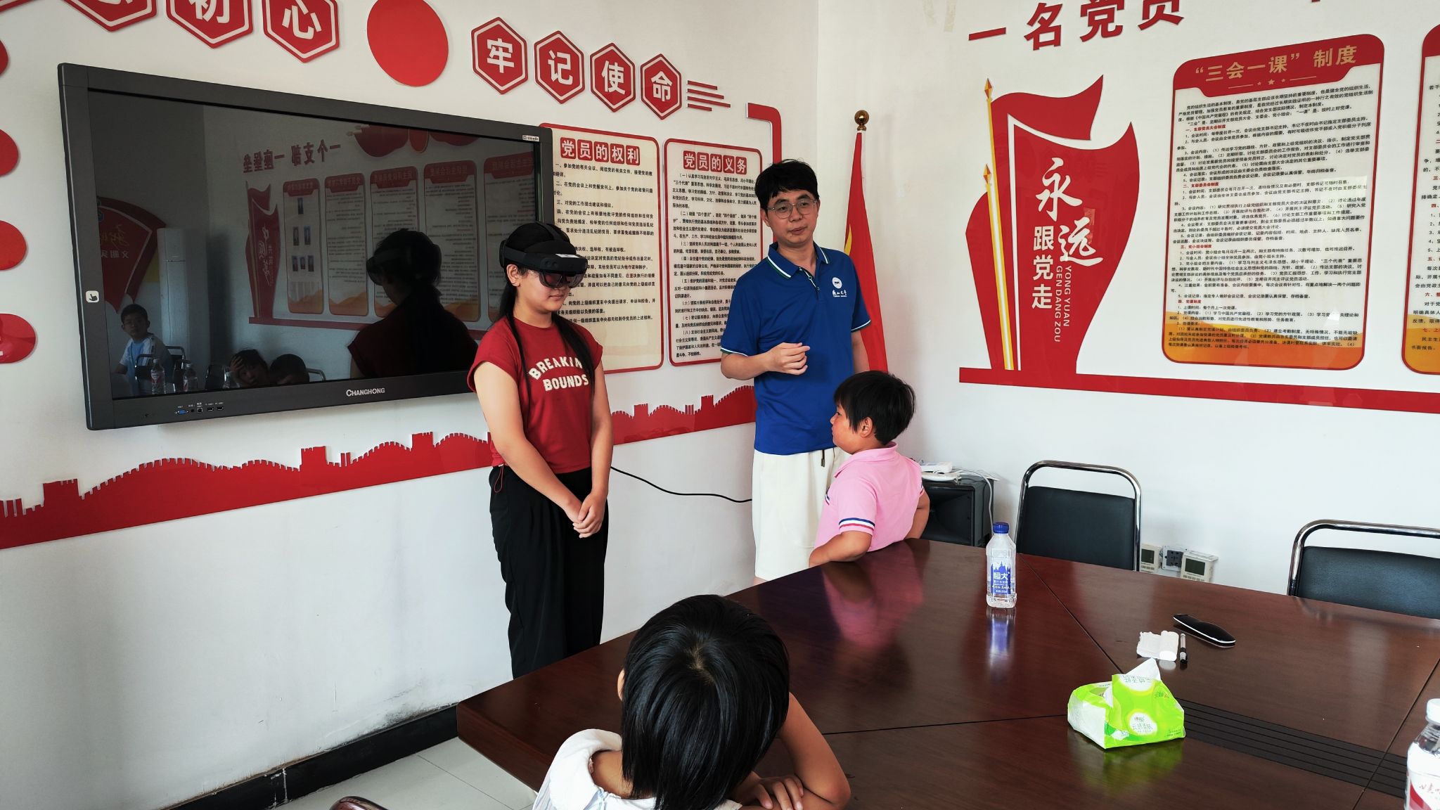 志愿服务活动中,科普宣传队向村民们展示了赵逢达老师科研团队研发的智能机器人,郭栋梁老师的虚拟现实3D眼镜场景,冯建周老师利用大模型与孩子们互动交流,生成作文、图像和小视频,李志明为村里老年人进行了中医健康风险评测,尤殿龙为村民们提供了睡眠数据智能监测及分析展示。