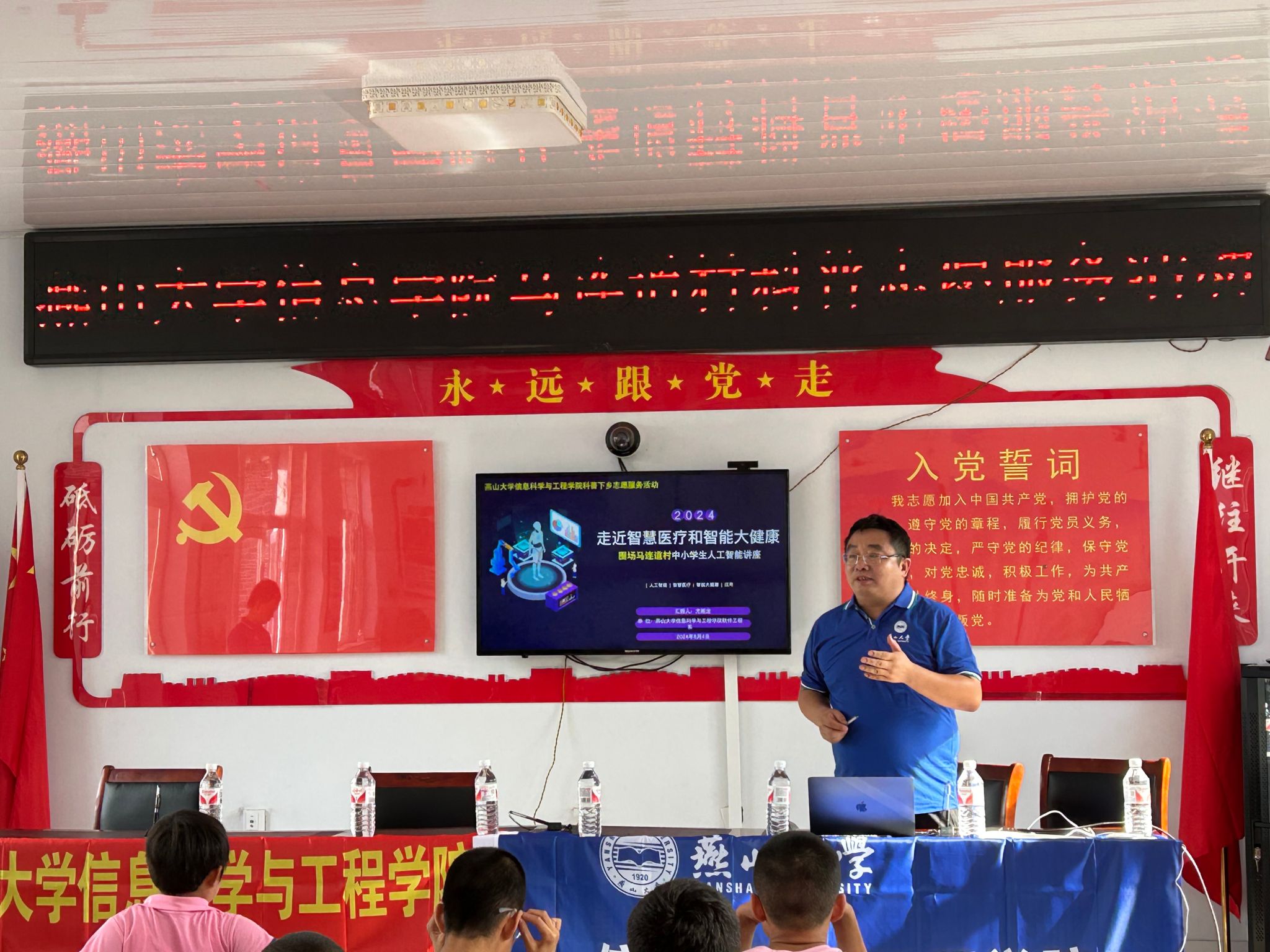 科普宣传队在常鑫、潘文宇、张洋等驻村工作队员的协调和支持下,做了充分的准备。科普宣传队于4日清晨出发,携带了先进的科技设备和图文并茂的科普宣传材料,开展了为期两天,共计五场“科技下乡科普惠民”志愿服务活动。本次科普宣传主要对象是农村少年儿童和老人,让孩子们切身感受互联网时代的科技魅力,为孩子们埋下崇尚科学的种子。科普宣传队向村里的老年人科普了老年健康知识。科普讲座包括:可视化探索未知世界(郭栋梁主讲)、人工智能和大模型技术(冯建周主讲)、走进智慧医疗和智能大健康(尤殿龙主讲)、智慧中医健康风险评估服务(李志明主讲)。
