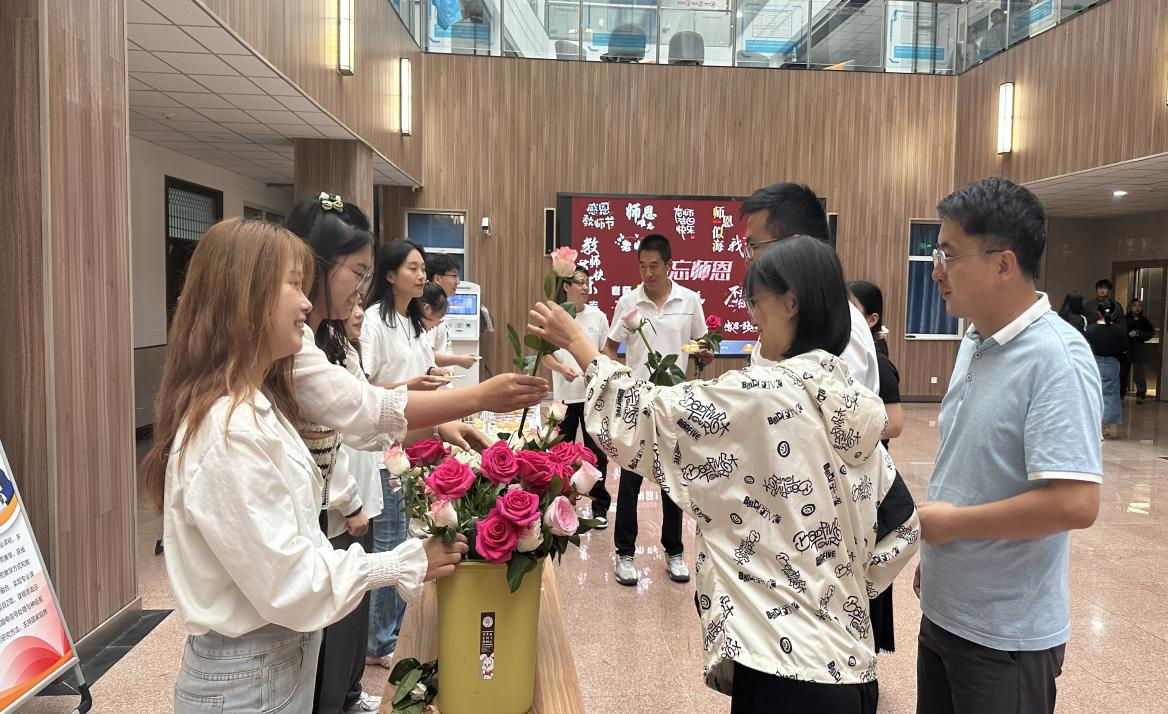 在这温馨而特别的日子里,员工将手中的鲜花和茶点献给老师,并献上祝福,每一句真诚的节日问候,都传递了师生之间的质朴情谊。