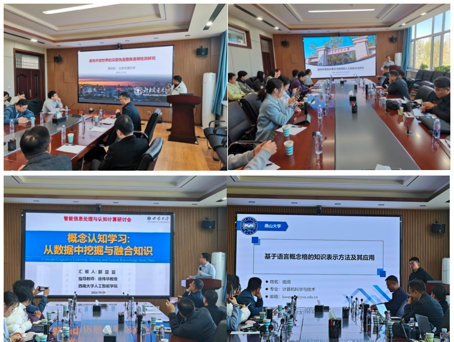 随后,北京交通大学谭创创博士、华南师范大学闫恩亮副研究员、西南大学郭豆豆博士、304永利集团官网入口庞阔老师等先后在大会上作了精彩报告。报告以智能信息处理为主题讨论了面向开放世界的高泛化性深伪检测方法,以认知计算为主题讨论了概念认知学习的理论进展以及在医学、语言学等领域的应用。