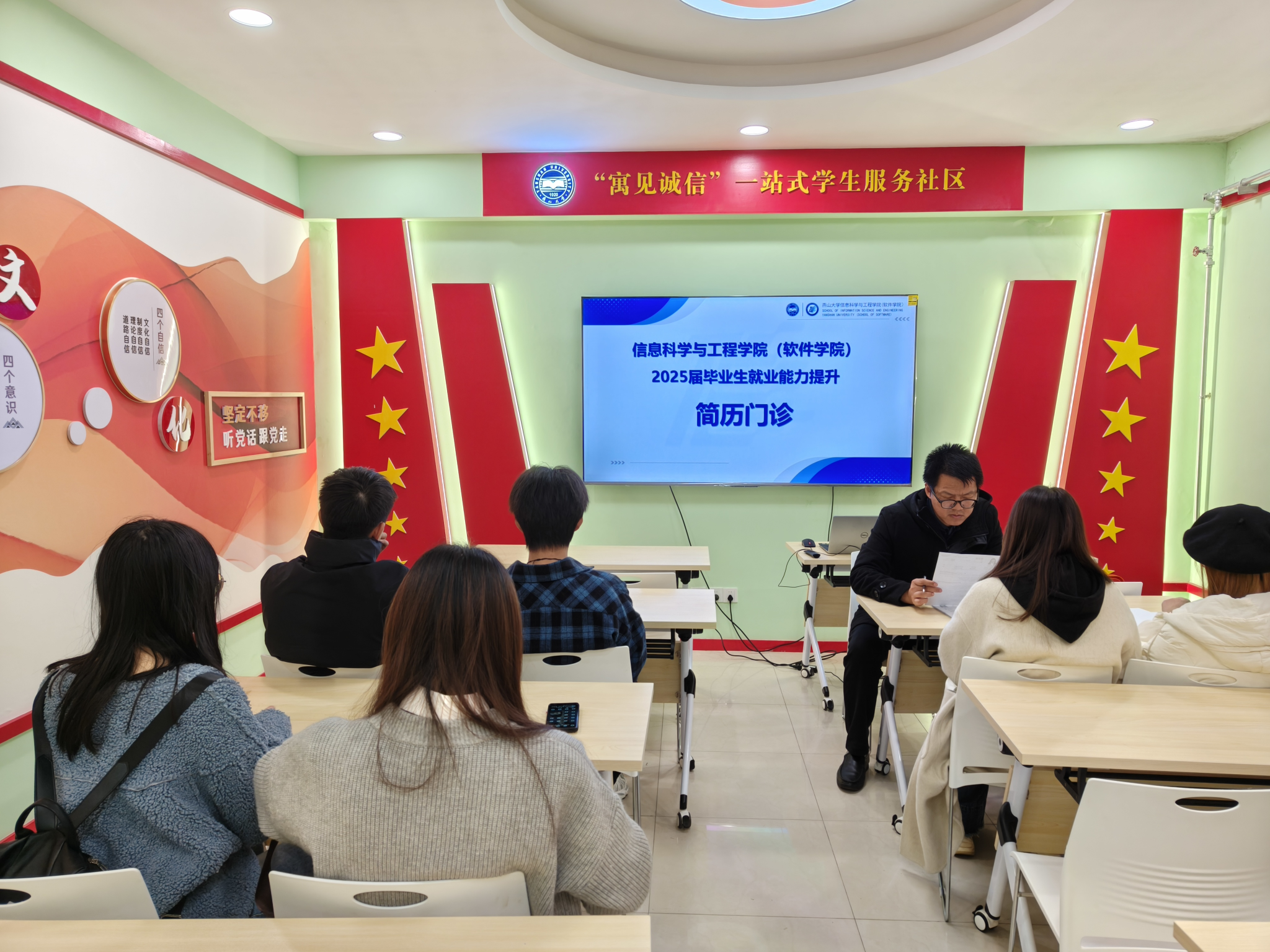 为推动公司就业工作开展,进一步提升毕业生求职竞争软实力,帮助员工提高制作求职简历的技能和水平,明晰就业方向,10月24日下午,永利集团304am登录在“寓见诚信”一站式员工社区举办2025届毕业生就业加油站,开展就业咨询与简历指导,贾永伟和宋江涛2位老师倾情“坐诊”,为毕业生点对点提供就业服务。