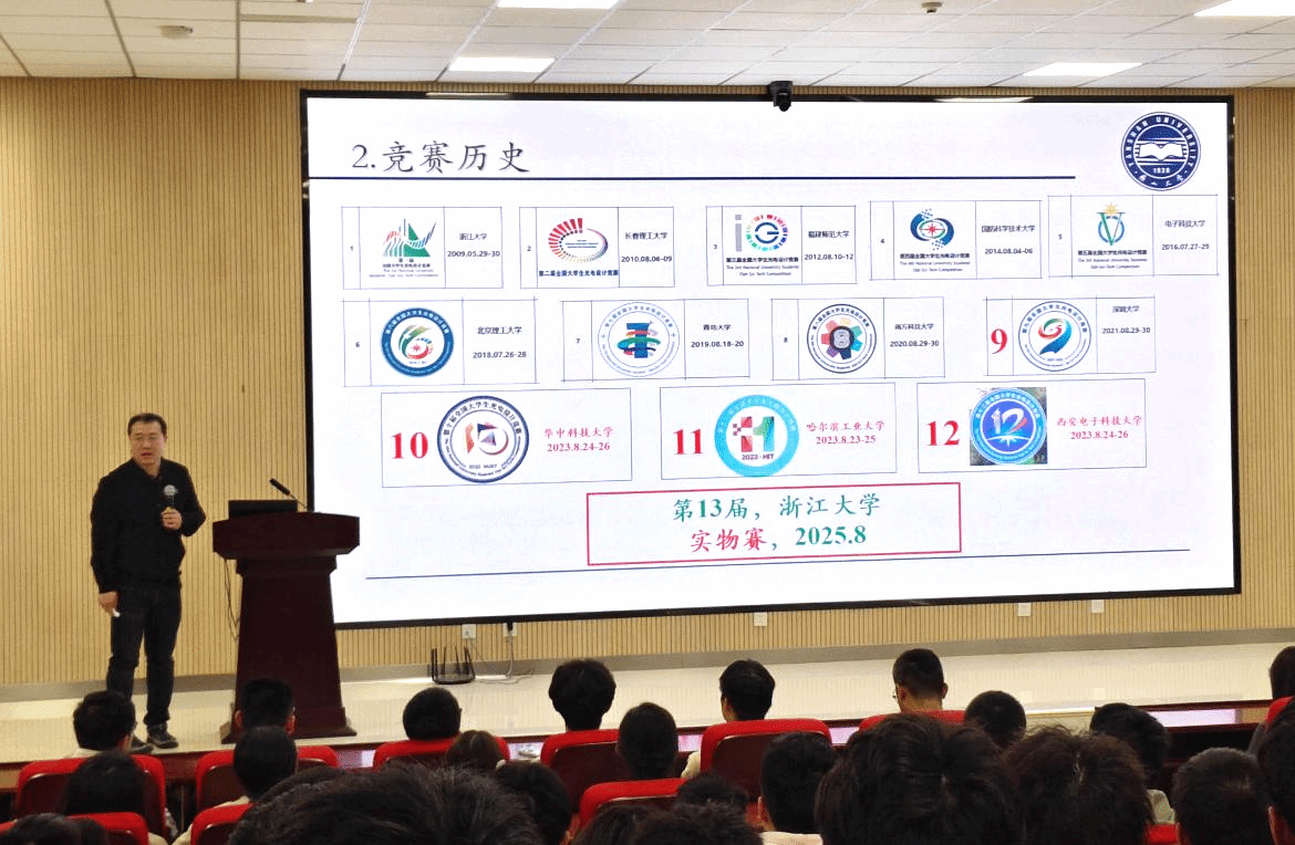付兴虎老师主要围绕全国老员工光电设计大赛进行讲解。付老师从竞赛简介出发,依次介绍了竞赛历史、华北区赛情况、如何报名竞赛,以及创意赛和常规赛的赛制常识,鼓励同学们跨专业组队参赛,秉持科学创新精神,勇立科创潮头。付老师为解答同学们后续参赛中遇到的问题,专门建立赛事QQ群,为同学们提供了一个交流学习的平台。通过付老师的讲解,同学们对全国老员工光电设计大赛产生浓厚兴趣。