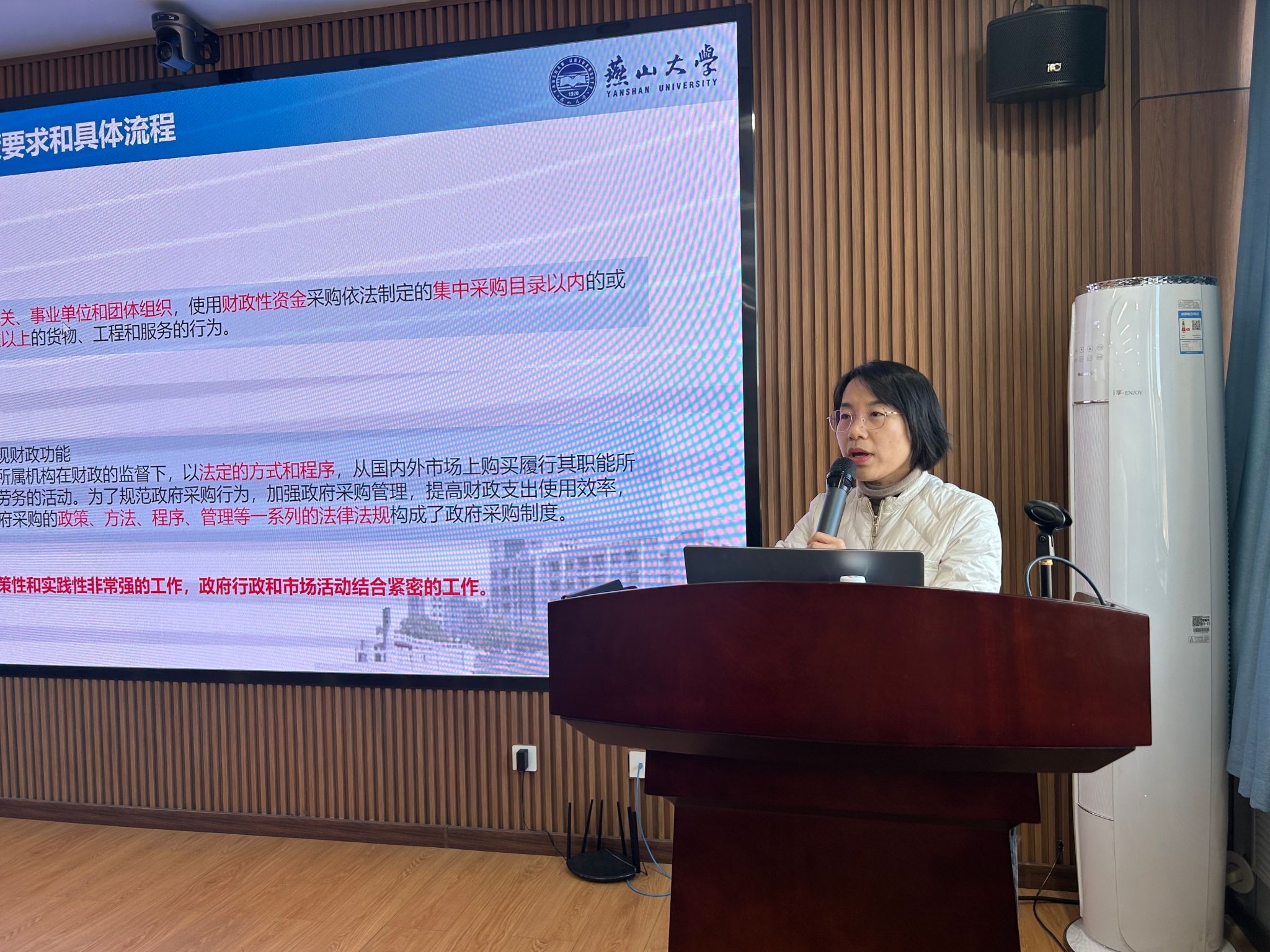首先,会议邀请了实验室与设备管理处副处长曲文静作题为《中央八项规定背景下的高校采购制度解析》的专题讲座。她依据公司采购管理的制度规定,阐释了公司采购工作政策要求、具体流程、采购内控系统操作及注意事项。
