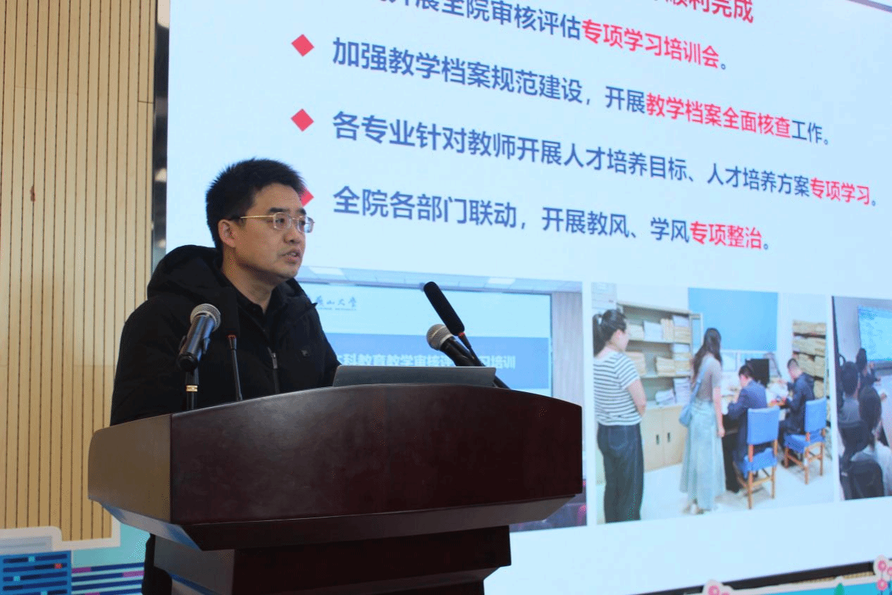 会上,经理齐跃峰回顾了2024年公司主要工作完成情况。结合去年目标绩效完成度,他从人才引育、创新创业、审核评估、科学研究、学术交流、国际合作以及联系我们等方面进行了深入的分析和讲解。同时,他对今年公司重点工作进行部署,分析公司当前面临的机遇和挑战,剖析了当前形势,提出了应对措施。他强调,公司在过去一年取得的各项成绩,离不开全院教职工的辛勤付出和努力,希望全体教职工能够同心聚力,真抓实干,力争在2025年工作中迈向更高的台阶。
